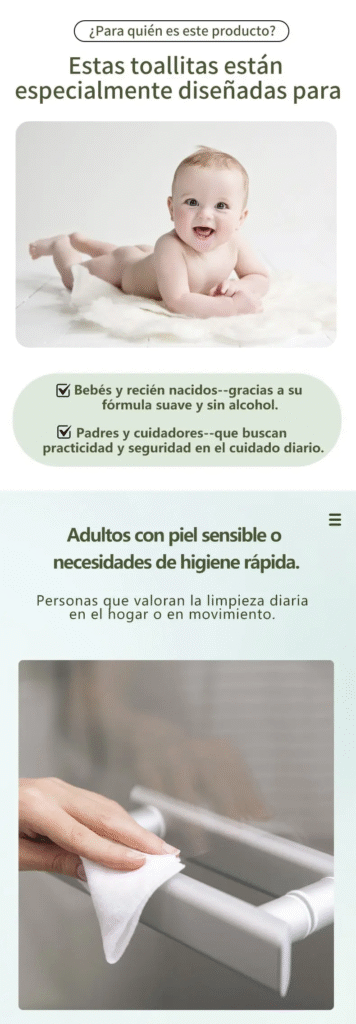 Sin alcohol ni fragancias agresivas, estas toallitas son ideales para limpiar manos y rostro en cualquier momento.