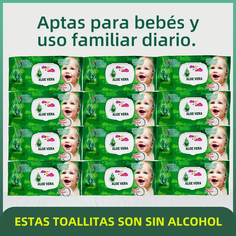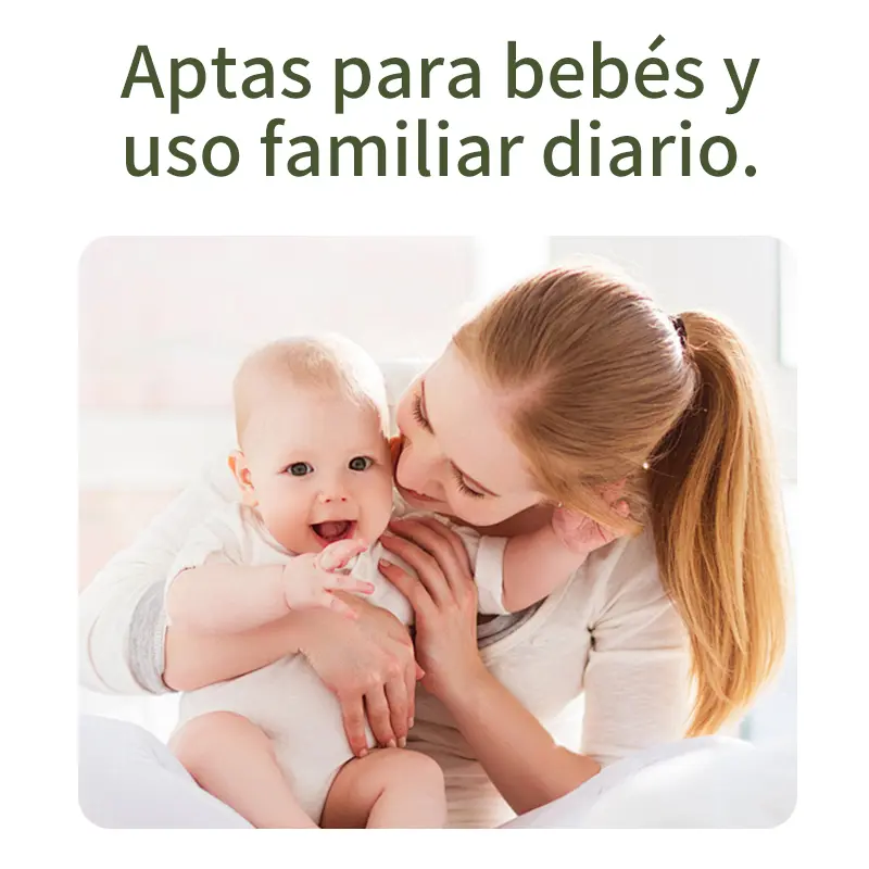 Extra suaves para tu delicada piel. Disponibles en 5 fragancias: Aloe Vera, Aloe & avena, Crema baby y Sin fragancia. SIN ALCOHOL; ideales para cuidar la piel de tu pequeno.